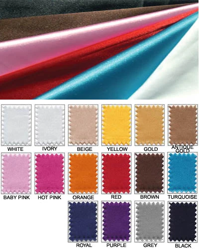| Color | Antique Gold, Beige, Black, Brown, Gold, Light Blue, Orange, Royal Blue, Turquoise, White, Yellow, Red, Purple, Maroon, Baby Pink, Hot Pink |
