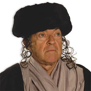 Stromel with Payes is made of plush fake fur with attached black curls. One size fits most. LOW SUPPLIES, CALL FOR AVAILABILITY.