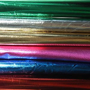 Tricot Lame’ is 100% metallic front on a soft tricot backing. Sold by the yard. 44″ wide.