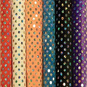 Velour with 3mm Hologram Dots is sold by the yard. 38″ wide. For Orange, see #7561.