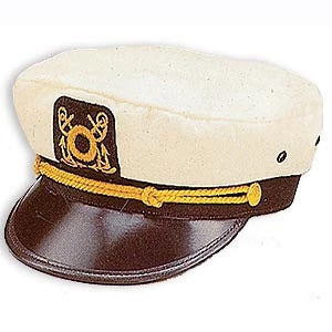 Yacht Captain Skipper Cap with adjustable back. White cotton. One size fits most.