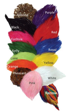 | Colors | Almond, Black, Fuchsia, Kelly, Lime, Orange, Pheasant, Light Pink, Purple, Red, Royal, White, Yellow, Rainbow |